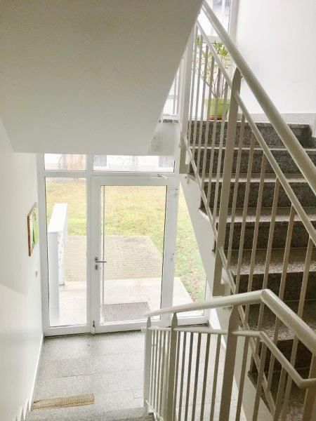 Die Wohnung befindet sich im Erdgeschoss und besitzt einen großzügigen Balkon-mit Blick ins Grün. Besonders das helle Wohnzimmer strahlt Gemütlichkeit aus. Das innenliegende Bad verfügt über eine Dusche. Hier befindet sich auch der Waschmaschinenanschluss.