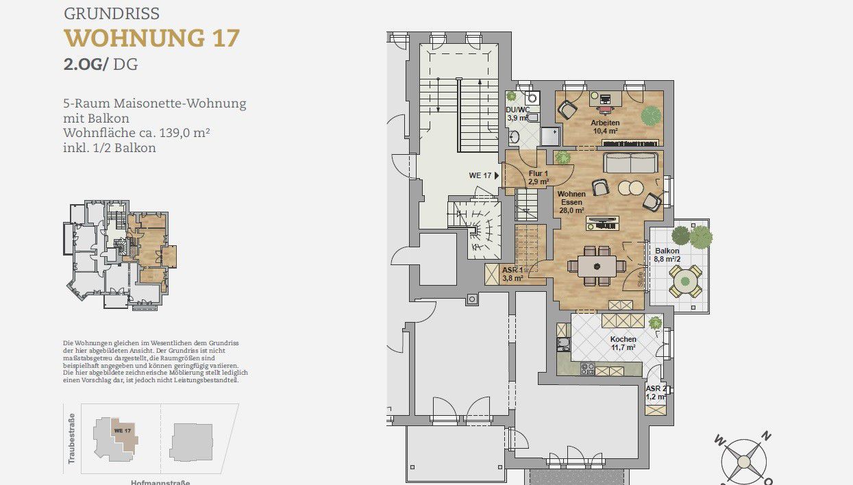 Der Altbau verfügt über 4 Etagen und Wohnungsgrößen zwischen ca. 50 m² und ca. 139 m². Der Charme des Gebäudes wird hier klug mit den modernen Annehmlichkeiten verbunden.
