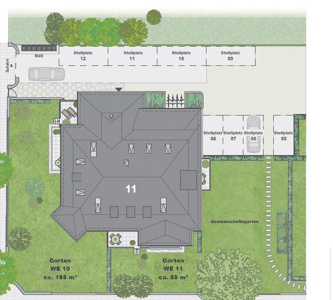 Alle Wohnungen werden über sonnige Balkone oder Loggien verfügen. Im Erdgeschoss wird zusätzlich eine großzügige Gartenfläche zur eigenen Nutzung vorhanden sein.