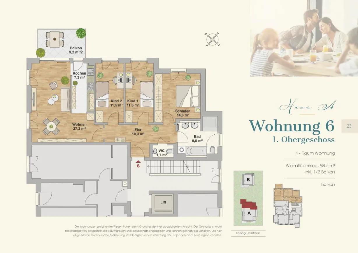 Das Grundstück verfügt über 11 PKW-Stellplätze und eine Car-port Anlage mit 3 PKW-Stellplätzen. Bei der Planung des Neu¬baus wurde auf ausreichende Abstellmöglichkeiten geachtet. So gibt es neben den großflächigen Kellerabteilen einen Wasch¬maschinenraum im Keller, sowie einen Fahrradabstellraum und weitere Fahrradabstellstellflächen im Außenbereich. Jede Wohnung ist mit einem Balkon oder einer Terrasse ausgestattet.