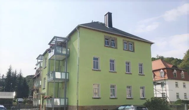 Das sanierte Mehrfamilienhaus befindet sich mitten im Ort Bad Gottleuba. Es erstreckt sich über 3 Etagen. Somit ist es ein ruhiges Haus mit lediglich 6 Mietparteien. Jedem Mieter steht ein separates Kellerabteil, eine Kammer auf dem Dachboden ein Waschmaschinenplatz und ein eigener Stellplatz (zur Miete) zur Verfügung.