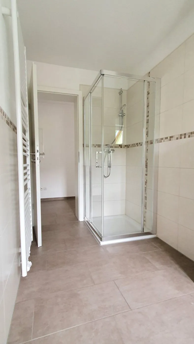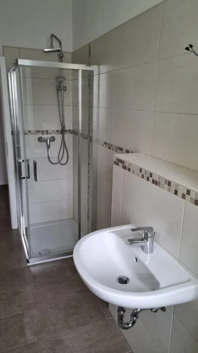 In allen Räumen wurde modernes Laminat verlegt. Die Bäder erhielten zeitgemäße und ansprechende großformatige Fliesen.