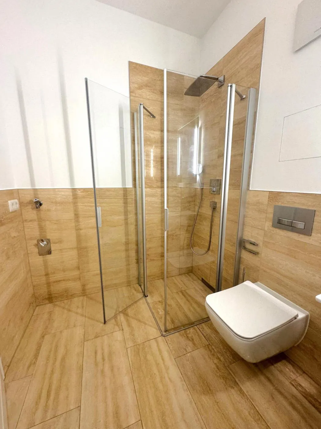 Die 4-5 stöckigen Wohn- und Geschäftshäuser bestehen aus 9 Bauteilen, die sich harmonisch ergänzen. Der Zugang erfolgt über 5 getrennte Treppenhäuser. Ein Aufzug ist selbstverständlich installiert.