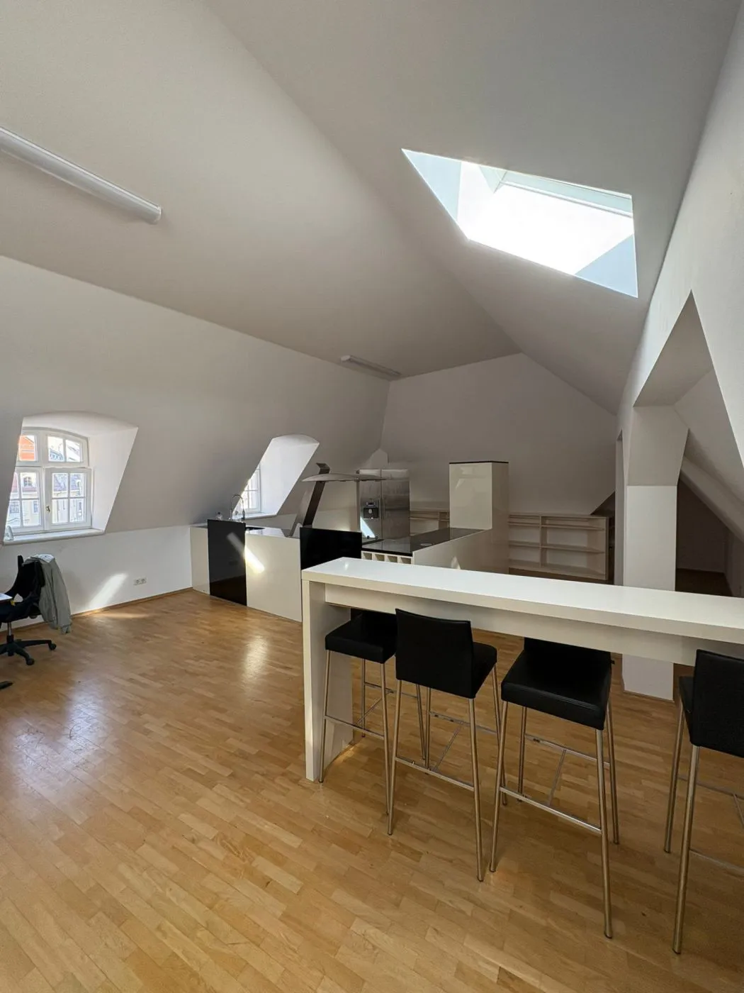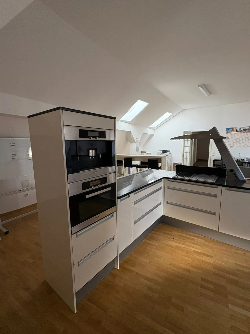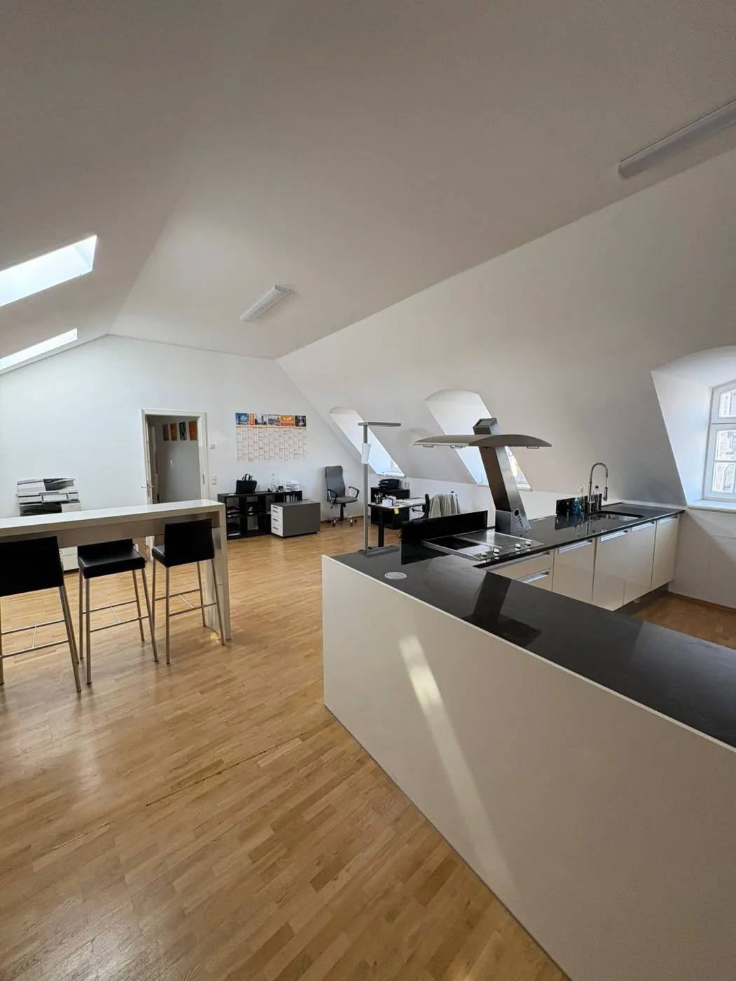 Zu dieser Büroeinheit gehört ein Tageslichtbad mit Eckbadewanne und Duschtempel. Im großzügigen Besprechungsraum ist eine exklusive Einbauküche mit Kaffeevollautomat, Sidebyside Kühlschrank und vielem mehr vorhanden.