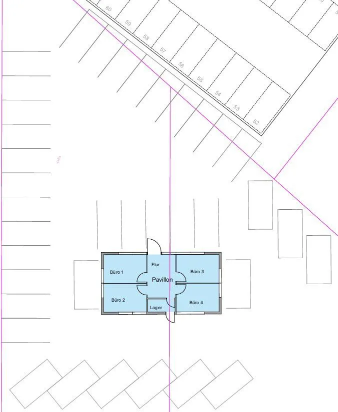 Der freistehende Pavillon bietet eine helle, klare Raumstruktur und eine repräsentative Außenwirkung – perfekt für Vertrieb, Beratung, Dienstleistung oder Ausstellungszwecke. Das geräumige Grundstück und die Außenstellplätze bieten den optimalen Platz für z.B. Gebrauchtwarenhändler.