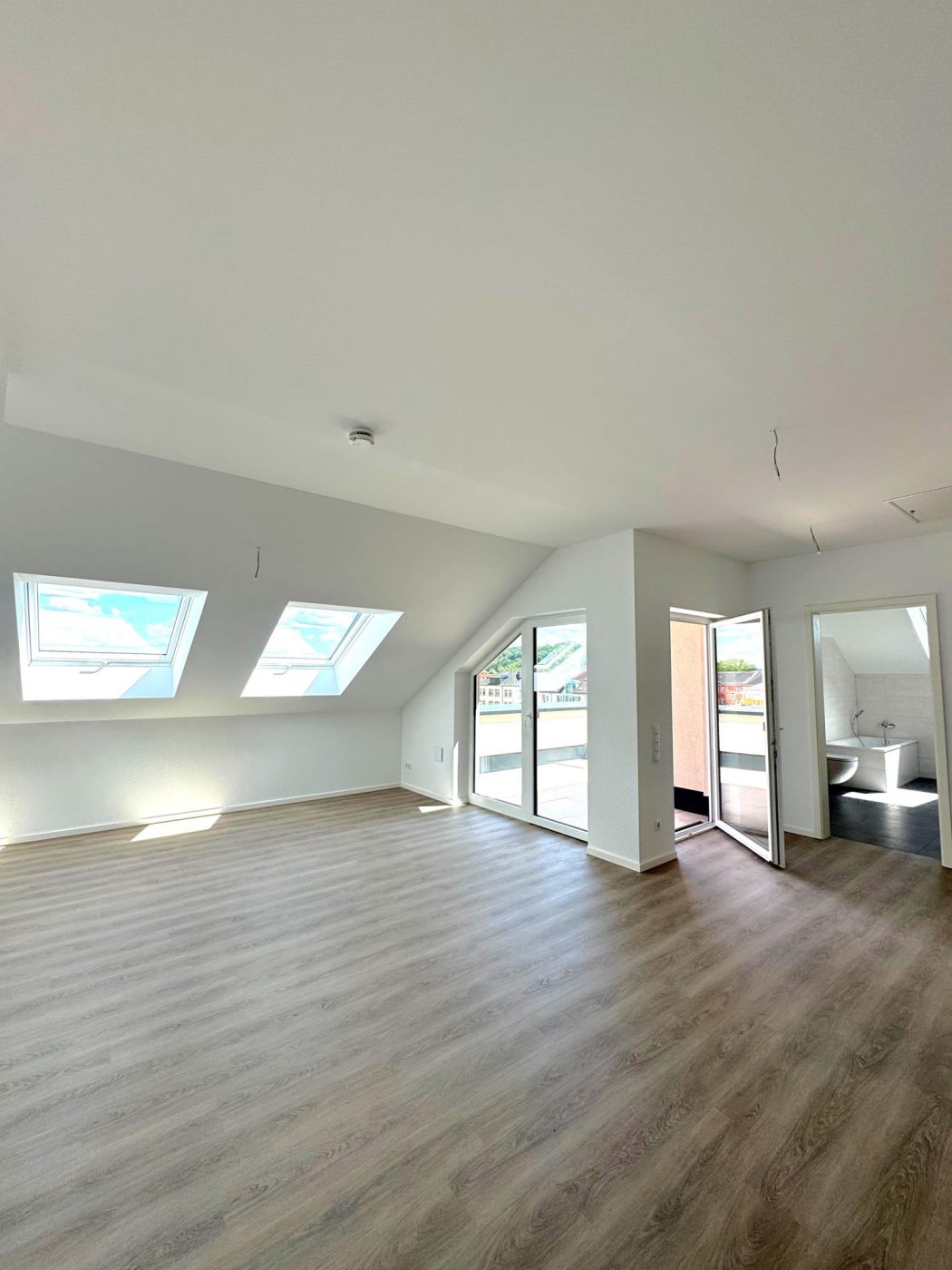 Für diejenigen, die das Besondere suchen, bieten die Wohnungen im Dachgeschoss eine exklusive private Dachterrasse. Genießen Sie den weiten Ausblick und die frische Luft in Ihrem ganz persönlichen Außenbereich – perfekt für entspannte Stunden im Freien oder gesellige Abende mit Freunden.