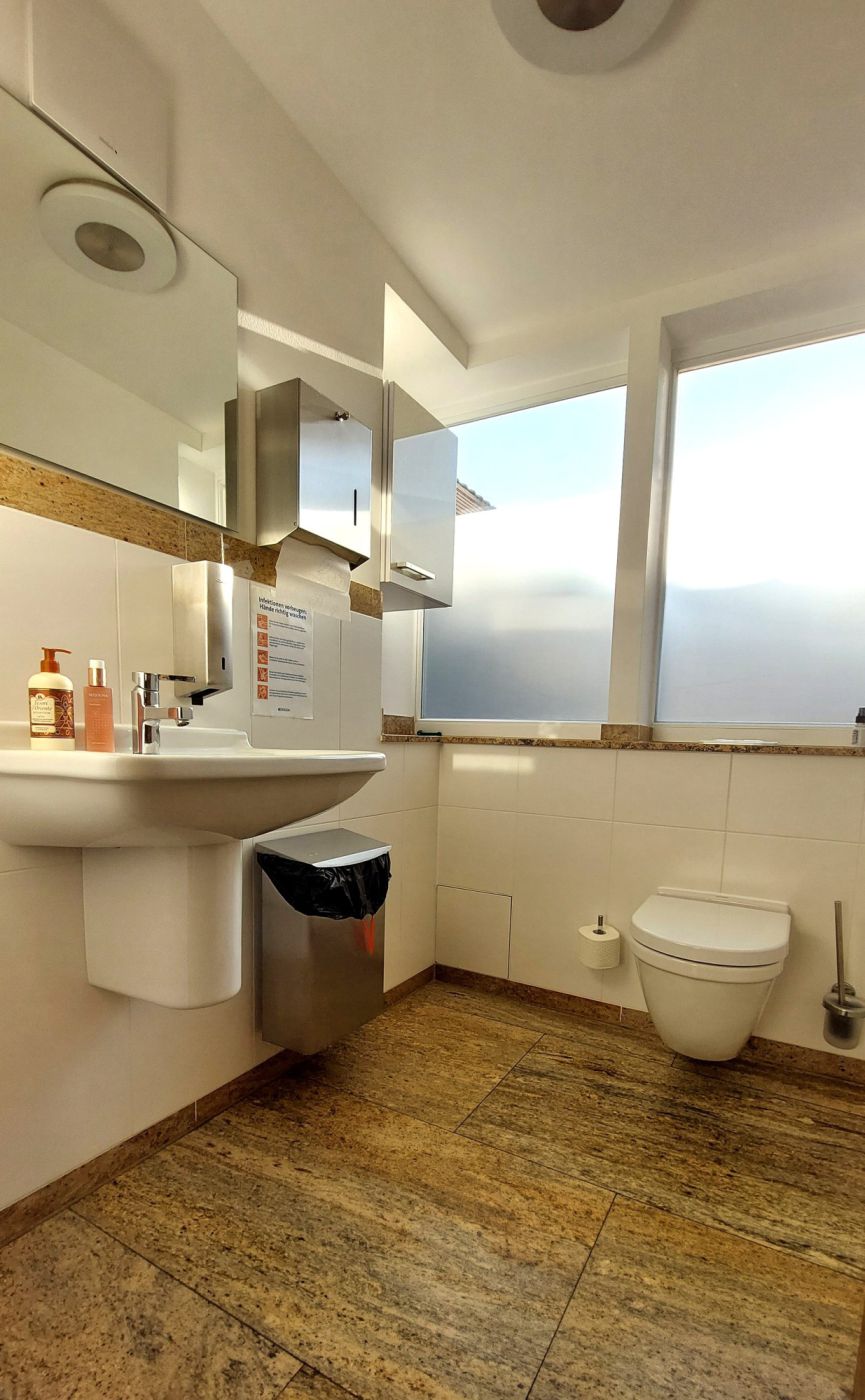 Eine gemeinschaftliche Nutzung des Empfangsbereiches, des Besprechungsraumes, der Küche und des Sanitärbereiches ergänzen das Angebot.