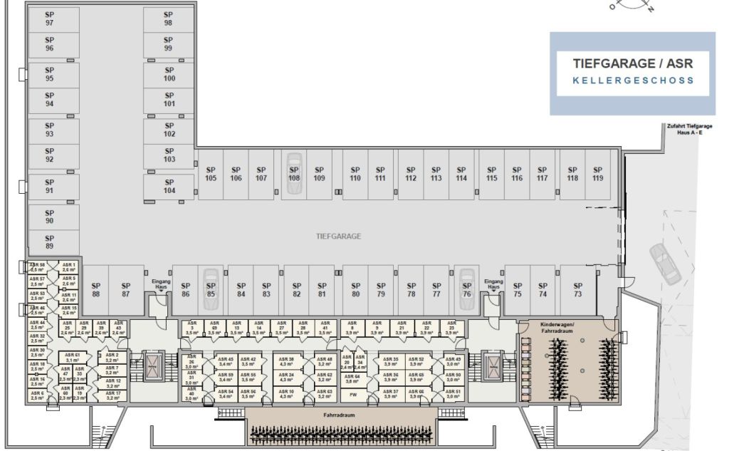 Die Wohnung verfügt über einen eigenen Pkw-Stellplatz in der Tiefgarage. Für ausreichende Abstellmöglichkeiten für Fahrräder ist ebenfalls gesorgt.