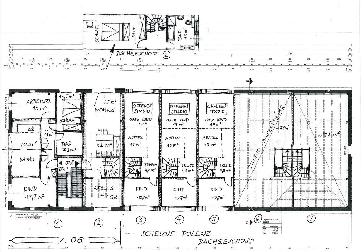 Die Scheune selbst überzeugt durch eine Vielzahl interessanter Perspektiven: Eine Umnutzung zu 5 bis 7 Wohneinheiten ist bereits genehmigt. Zudem liegt für das Objekt bereits eine Vorplanung eines Architekturbüros vor.