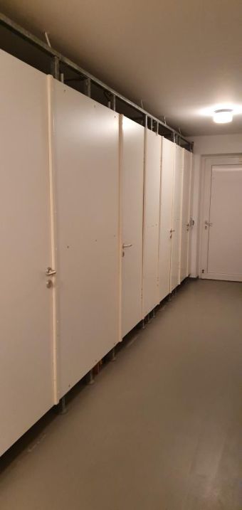 Im Wohn- und Schlafraum ist Laminatfußboden verlegt, die restlichen Räume sind mit Fliesen ausgestattet.