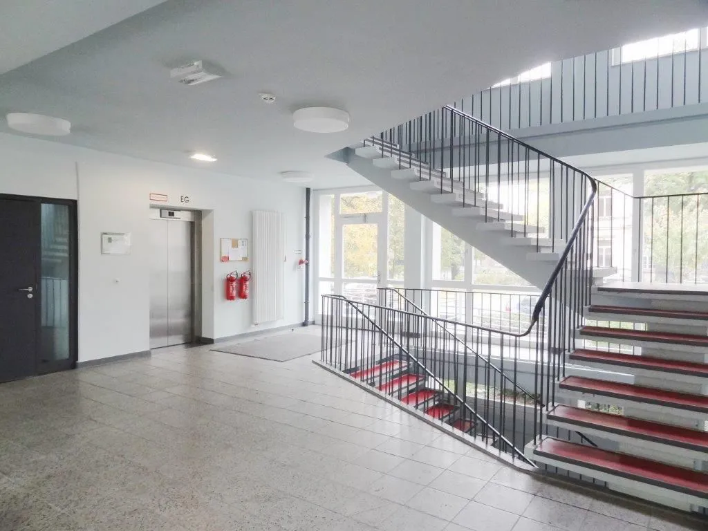 Mit dem Lift oder über das breite Treppenhaus gelangen Sie mühelos in die gemütliche Wohnung.