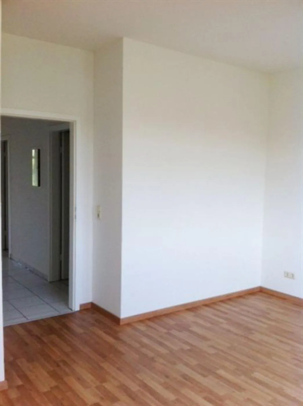 Das Wohnzimmer und das Schlafzimmer sind mit hochwertigem Laminatboden ausgestattet. Das innenliegende Bad mit Waschmaschinenanschluss verfügt über eine Dusche und ist ebenso wie der Flur gefliest.