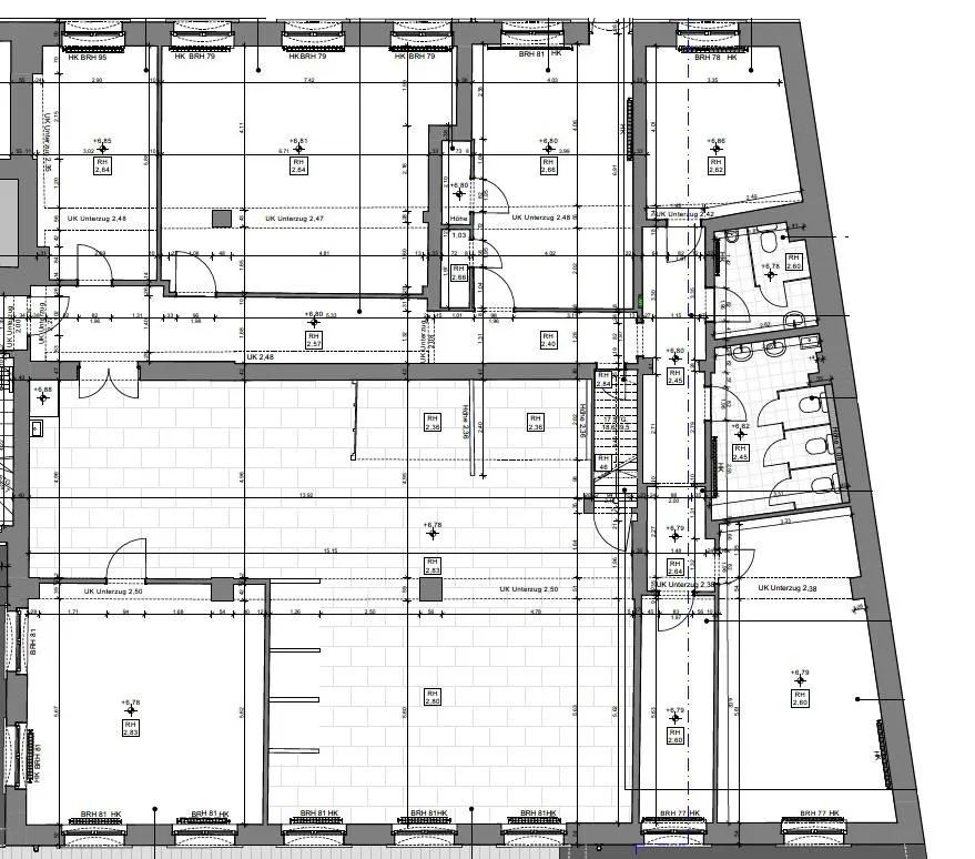 Der aktuelle Zustand der Fläche ist teilweise renovierungsbedürftig. Der Eigentümer ist gern bereit die Fläche nach Ihren Wünschen zu renovieren - Decken, Wände, Fußboden. Somit können Sie sich Ihren idealen Arbeitsplatz erschaffen. Je nach Umfang der Arbeiten kann sich die Nettokaltmiete erhöhen.