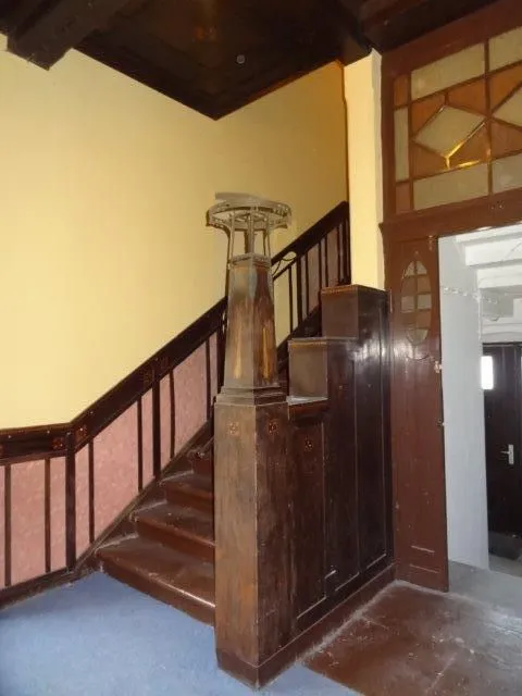 Im Innenbereich sind insbesondere die gut erhaltenen Stuck- und Deckenverzierungen und die wertvoll gestalteten Holztüren im EG und 1. OG hervorzuheben.