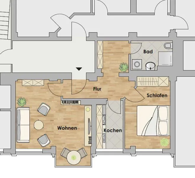 Helle, zentrumsnahe 2-Raumwohnung direkt am großen Garten!