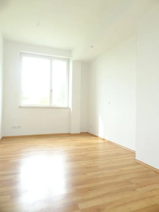 • Heller Wohn- und Schlafbereich mit Fertigparkettboden und klassischen Tapetenwänden