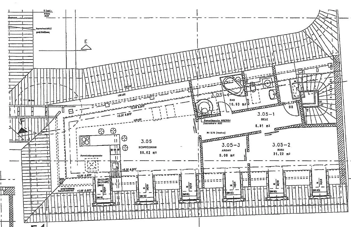 Zu dieser Büroeinheit gehört ein Tageslichtbad mit Eckbadewanne und Duschtempel. Im großzügigen Besprechungsraum ist eine exklusive Einbauküche mit Kaffeevollautomat, Sidebyside Kühlschrank und vielem mehr vorhanden.