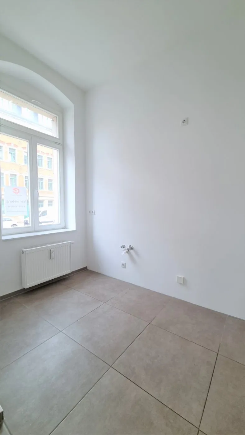 Die Fenster der Wohnräume sind zu einer ruhigen Seitenstrasse ausgerichtet. Alle Räume der schönen 4-Raumwohnung sind hell und freundlich. An das Wohnzimmer grenzt die offene Wohnküche, welche zum Kochen und verweilen einlädt. Vom Flur gelangt man bequem in alle Wohn- und Schlafräume. Hier wurde modernes Laminat ausgelegt. Das Tageslichtbad mit Badewanne und Dusche wurde mit modernen und großformatigen Fliesen ausgestattet. Hier befindet sich auch der Waschmaschinenanschluss.