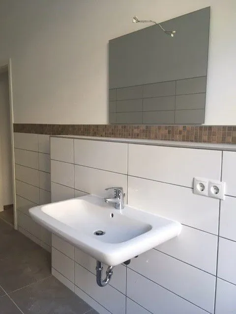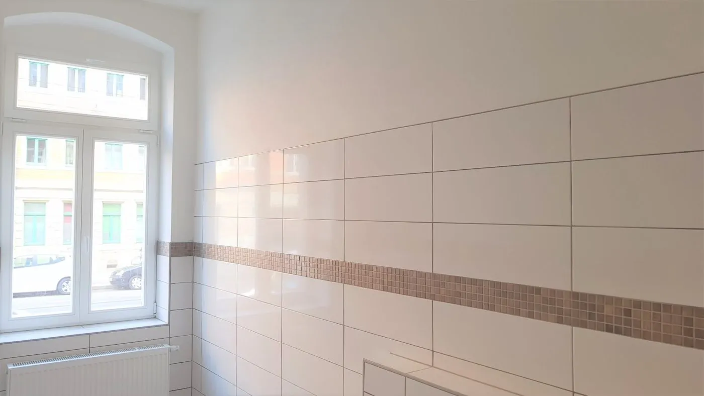 Bitte beachten Sie, dass einige der Bilder aus der angrenzenden Wohnung stammen, die im gleichen Stil saniert wurde, um die Ausstattung bezüglich der Fliesen und des Laminats darzustellen.