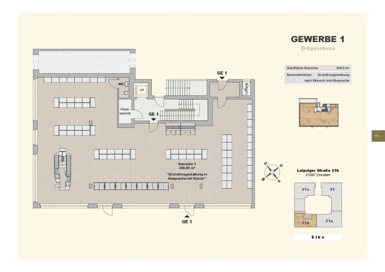 Im finalen Bauabschnitt "Leipziger Straße 21 - 21c bzw. Haus am Stadtplatz" entsteht ein echtes architektonisches Juwel mit teils unverbautem Elbblick. Man spürt die Energie der Natur und des Wassers in jeder einzelnen dieser hochwertigen Wohnungen, die sich auf 1-4 Zimmer und 31-124 m² aufteilen. Im Erdgeschoss sind ebenfalls 3 Gewerbe verfügbar.