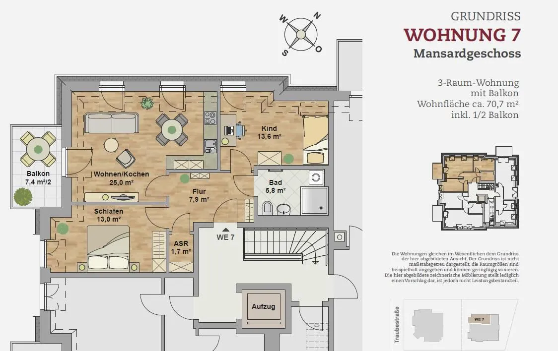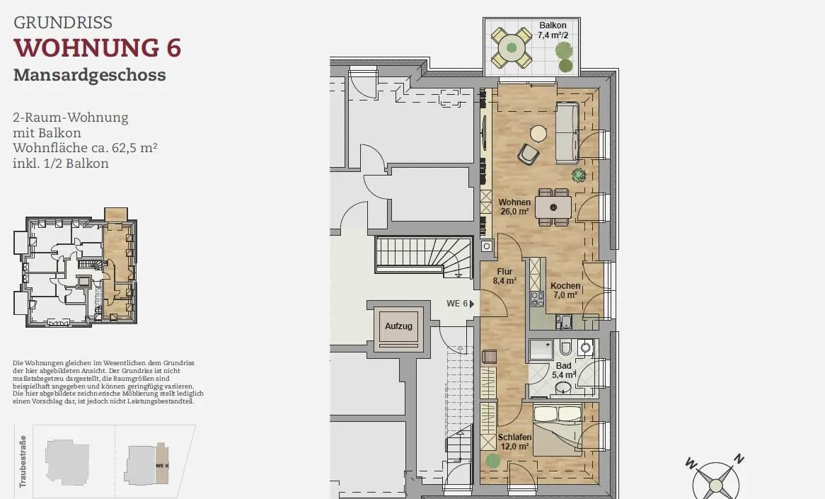 Wir handeln im Auftrag des Eigentümers. Alle Angaben beruhen auf Auskünften und Unterlagen des Eigentümers. Eine Haftung für deren Richtigkeit und Vollständigkeit können wir außer im Falle von Vorsatz nicht übernehmen.